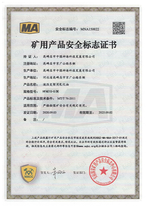 河北中煤神海科技发展有限公司难燃液压液产品上线