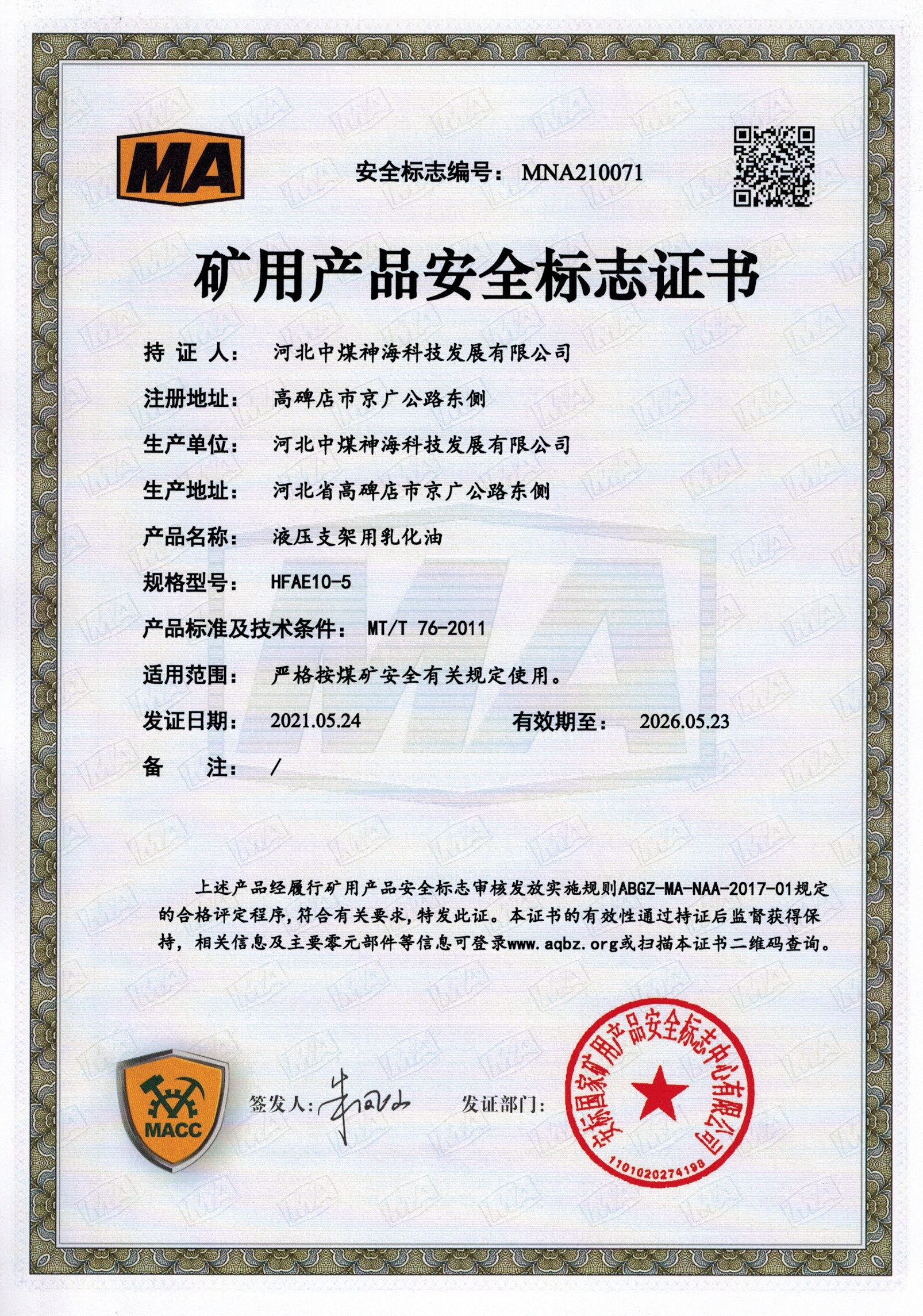 河北中煤神海科技发展有限公司难燃液压液产品上线