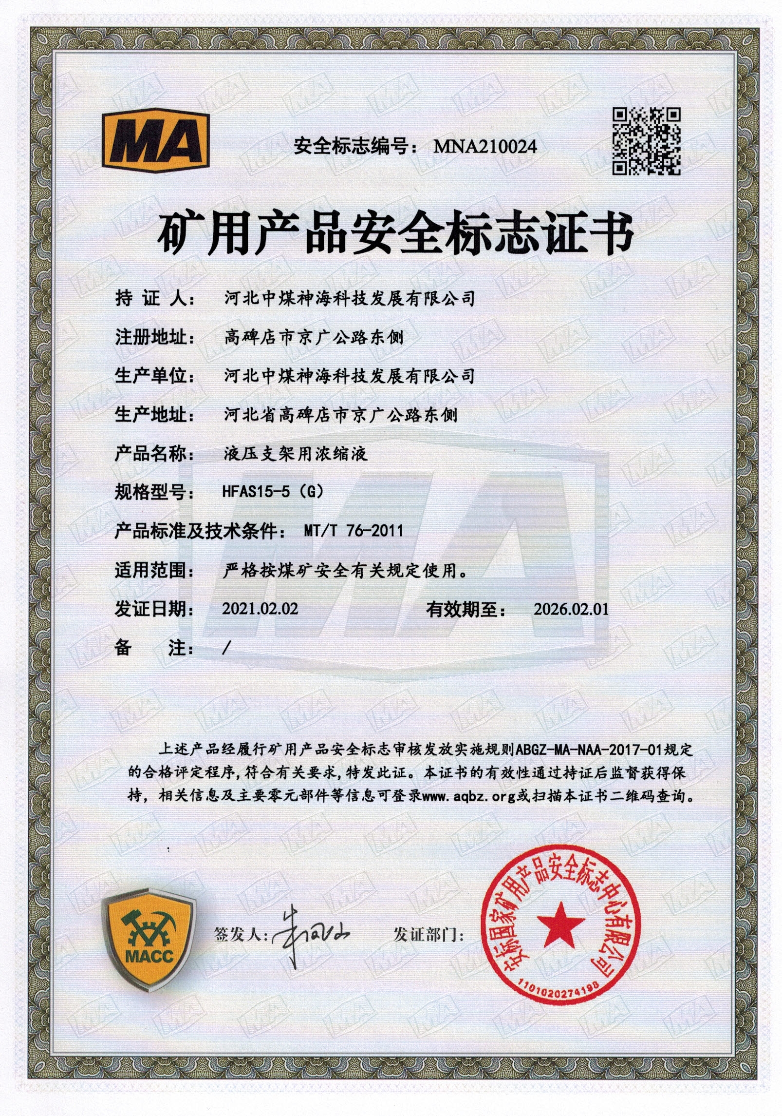 河北中煤神海科技发展有限公司难燃液压液产品上线