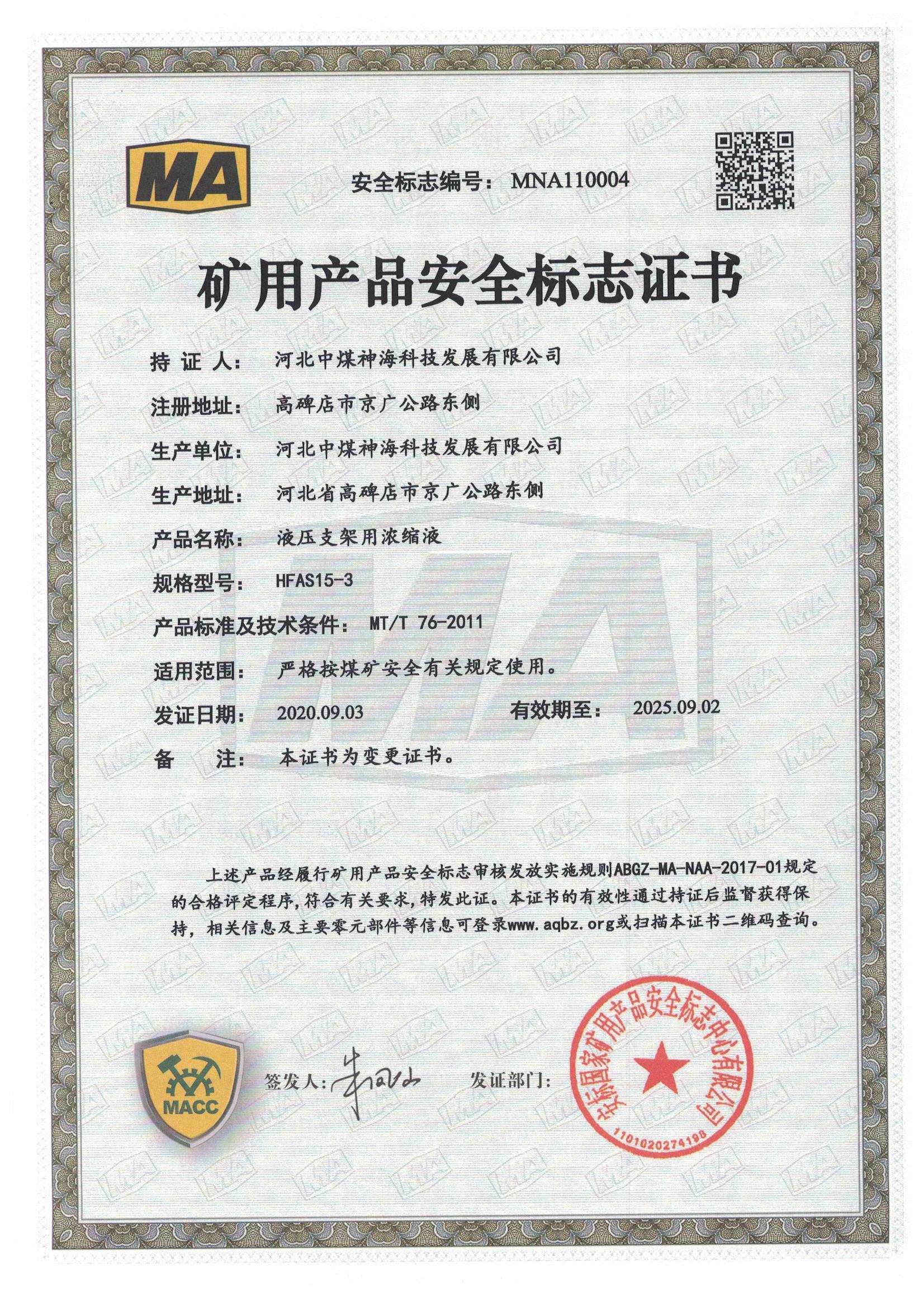 河北中煤神海科技发展有限公司难燃液压液产品上线