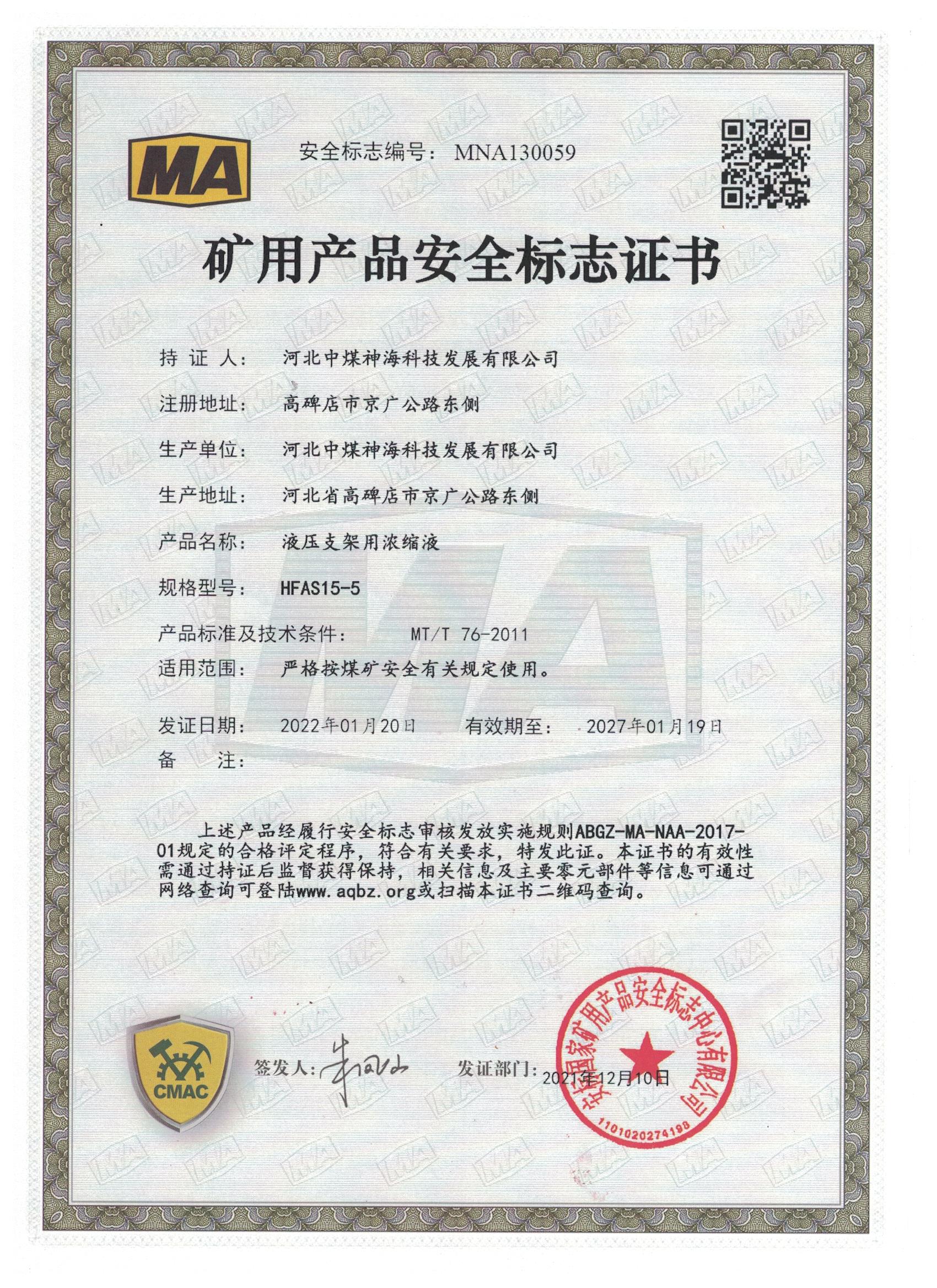河北中煤神海科技发展有限公司难燃液压液产品上线
