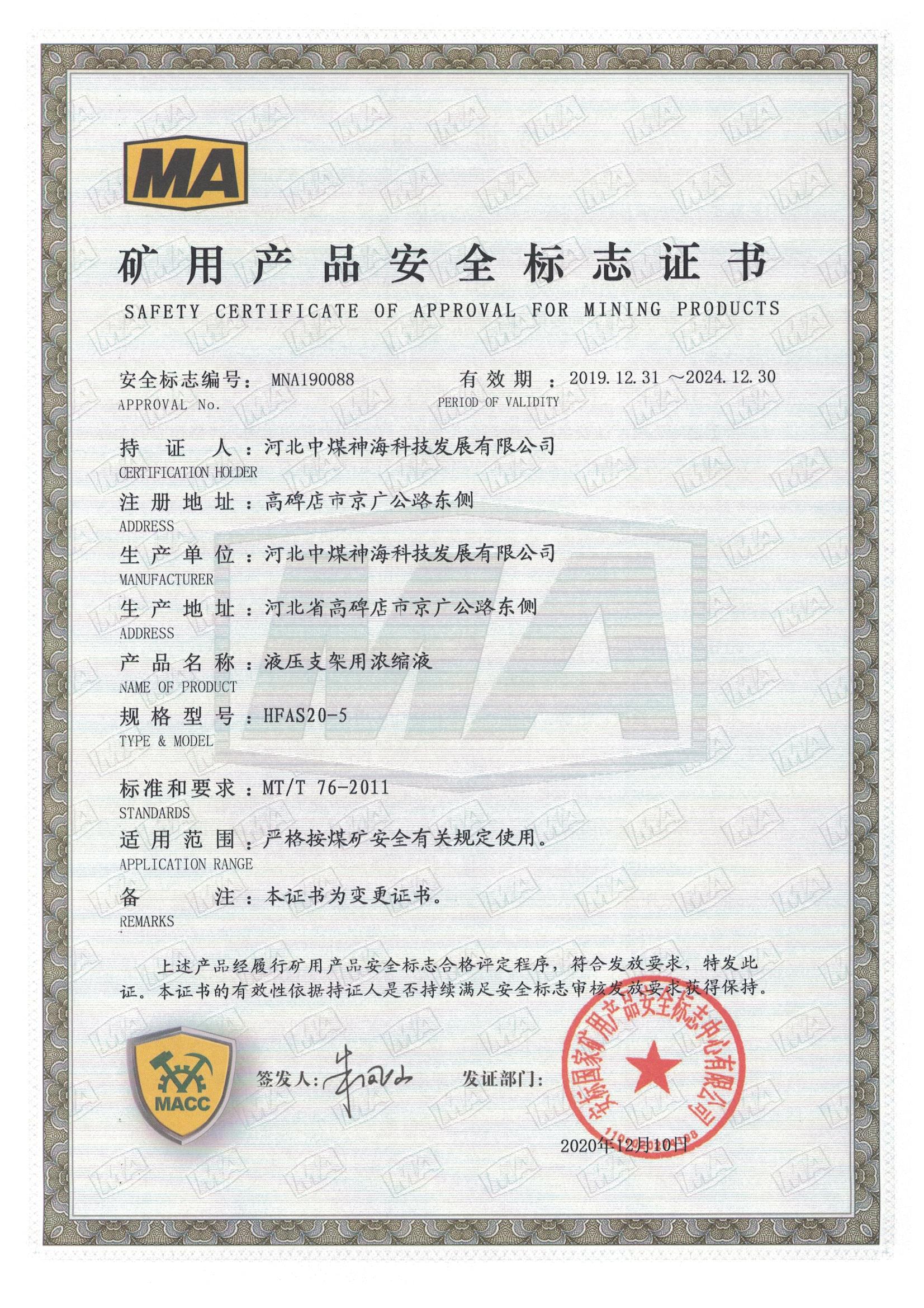 河北中煤神海科技发展有限公司难燃液压液产品上线