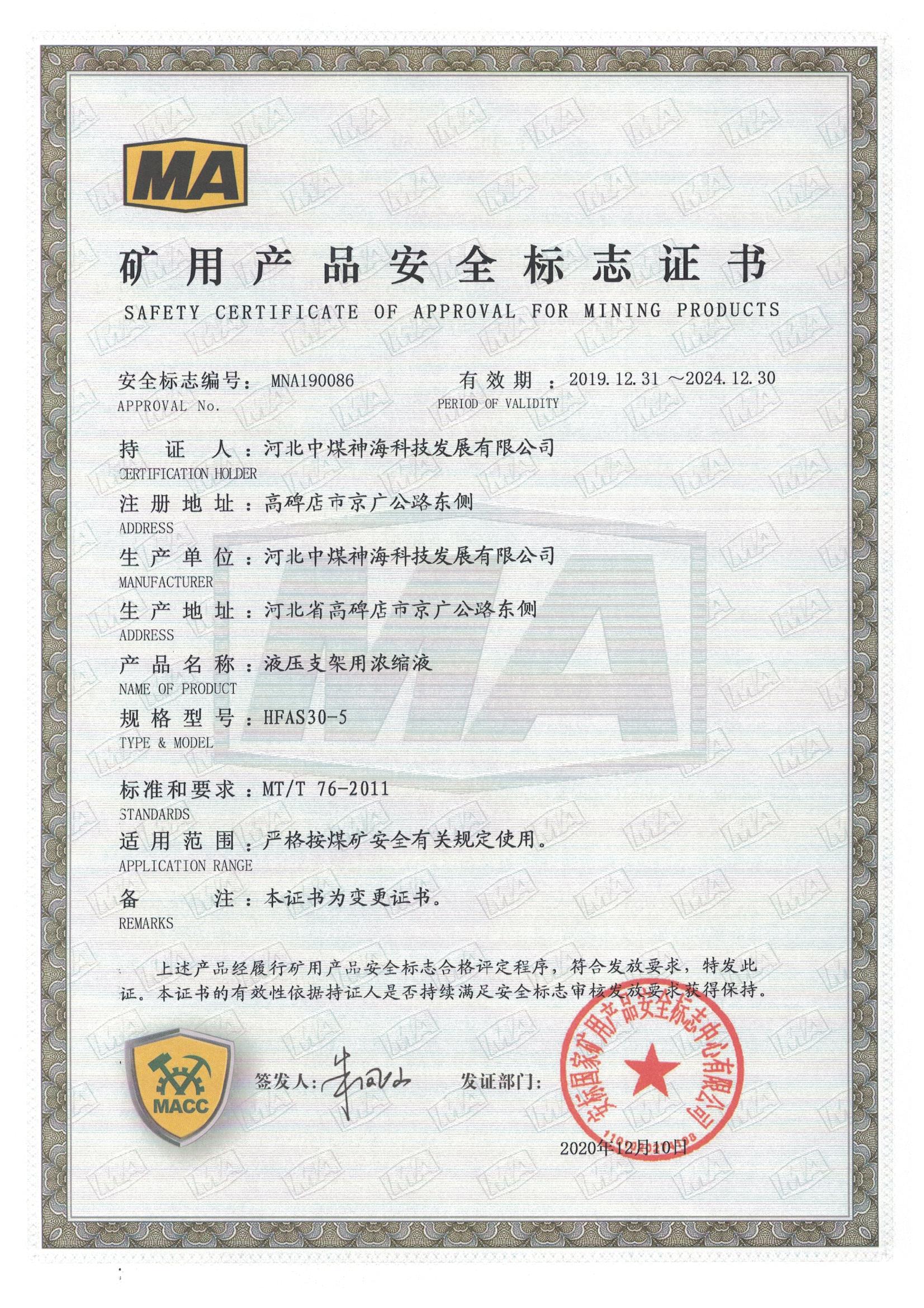 河北中煤神海科技发展有限公司难燃液压液产品上线