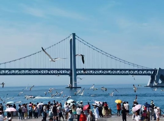 首站抵达星海广场,辽阔的广场上,海风轻拂而过,带着大海独有的清新气息。大家或与家人并肩漫步,静静欣赏广场的壮丽景致,任时光缓缓流淌;或三五成群驻足,举起相机定格下彼此的笑容与眼前的美景。