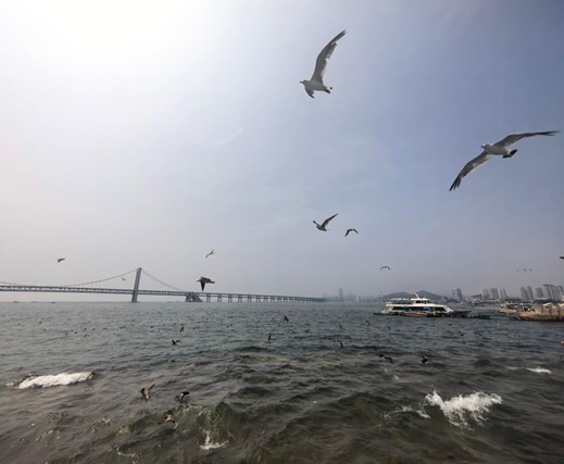 随着帆船缓缓驶出港口,一群群海鸥舒展翅膀,在船边盘旋嬉戏。大家手持食物轻轻投喂,孩子们难掩兴奋,清脆的呼喊声与海鸥的鸣叫交织在一起,将旅途的欢乐推向高潮。
